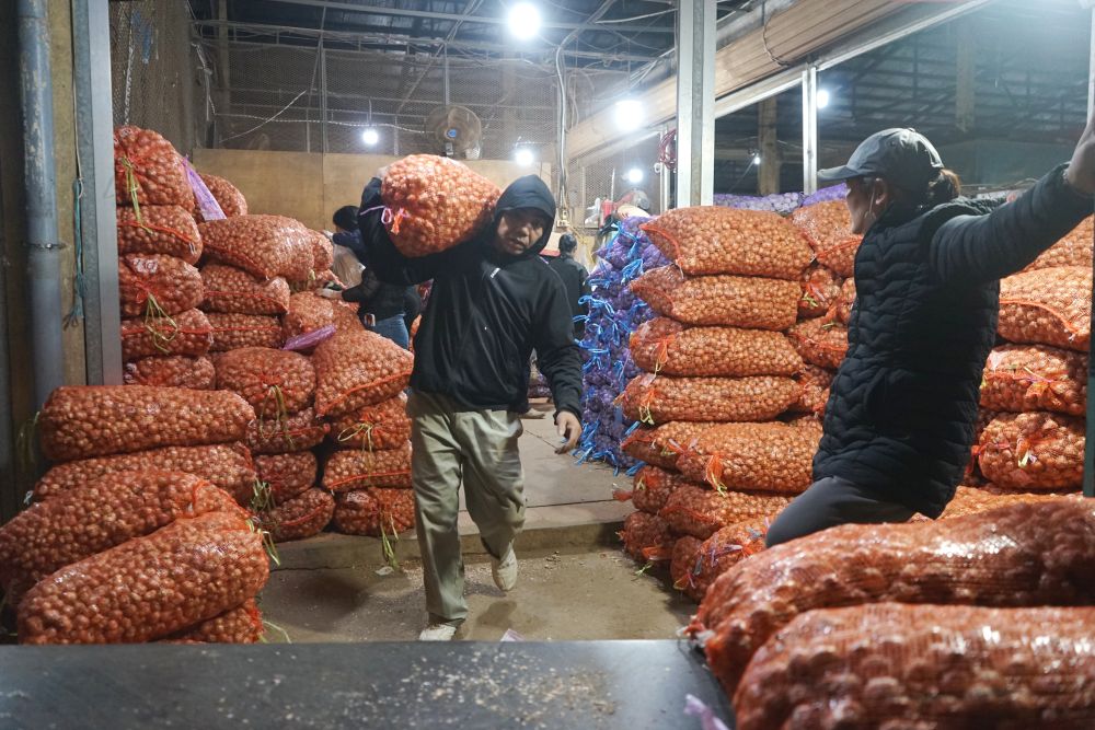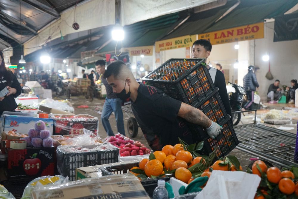 Mr. Nguyen Huy Vu (23 years old), a hired porter at the market, said that during the Lunar New Year, he and many others come to the wholesale market to earn a living. Although the work is somewhat reduced compared to every year, he can still earn an additional income of about 400 to 500 thousand VND per night to cover expenses and prepare for Tet with his family.