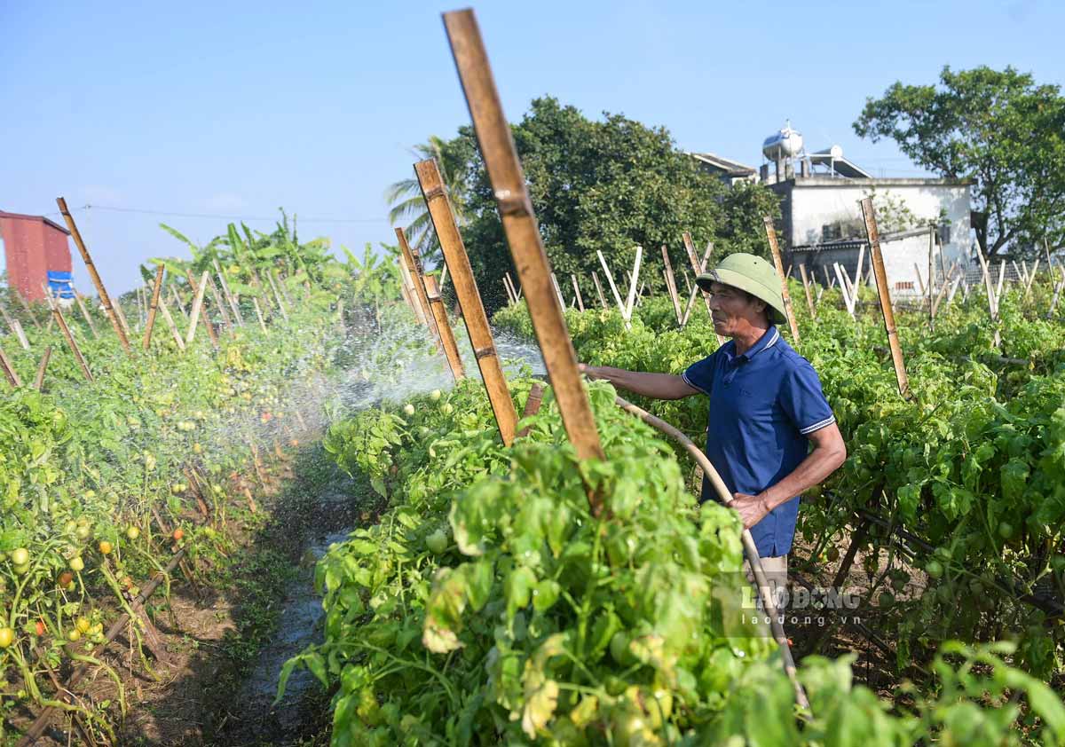 In some tomato-growing communes in Ninh Binh province, the harvest atmosphere is bustling right from the early days of the crop. According to people, tomato prices this year have increased much higher than last year, the output is stable, and traders have placed deposits to buy the whole garden since the fruit is still green, so people are very excited and assured to produce.