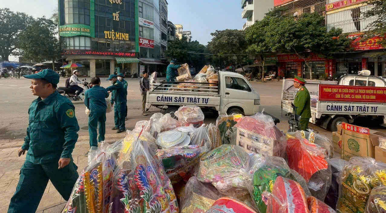In addition, the People's Committee of the ward has directed the Hoa Lu Market Management Board to rent trucks and arrange vehicles of the police force and public service centers to support traders in moving goods; directed the ward police force, ward military, youth union, and militia to support people in packaging and moving.
