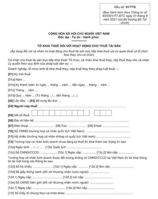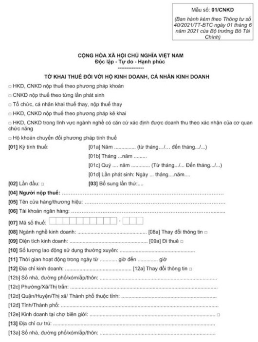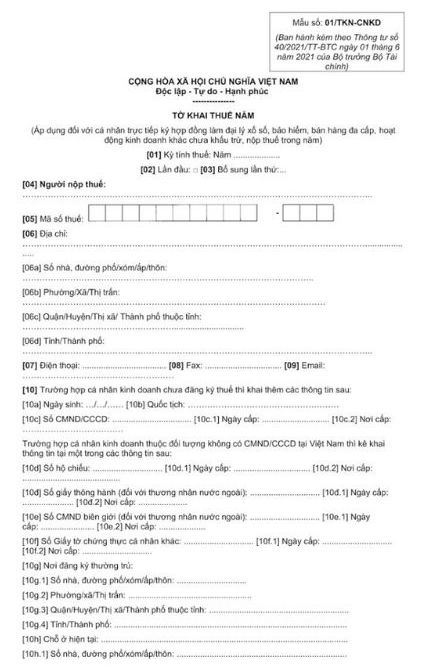 Form 01/TKN-CNKD: Annual tax declaration.