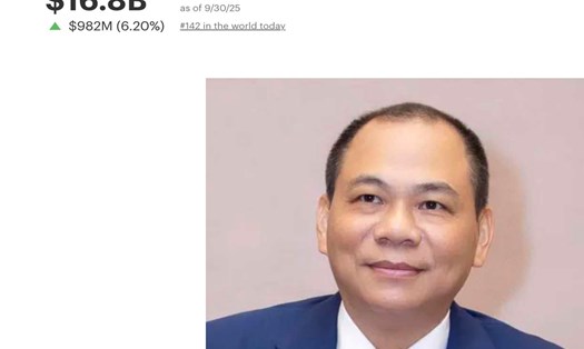 The update from Forbes shows that billionaire Pham Nhat Vuong's assets have decreased by 728 million USD (equivalent to about 18,000 billion VND), to 18.3 billion USD, causing him to drop to 132nd place in the list of billionaires in the world.
