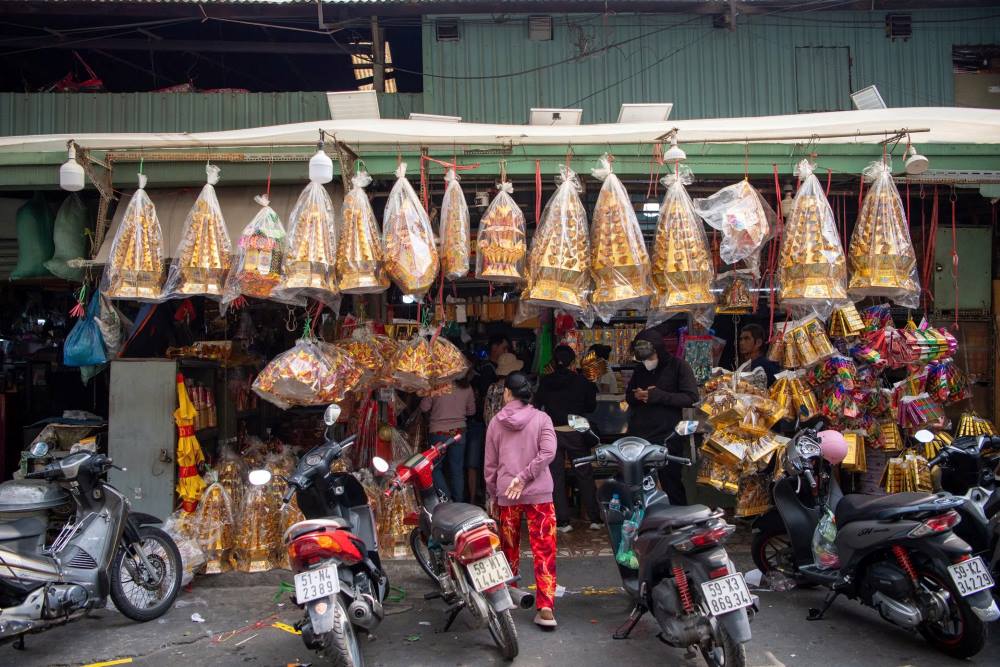 Although goods are abundant and diverse in designs from gold bars, gold boats, gold towers to package offerings, the trade atmosphere here this year is less bustling than in previous years.