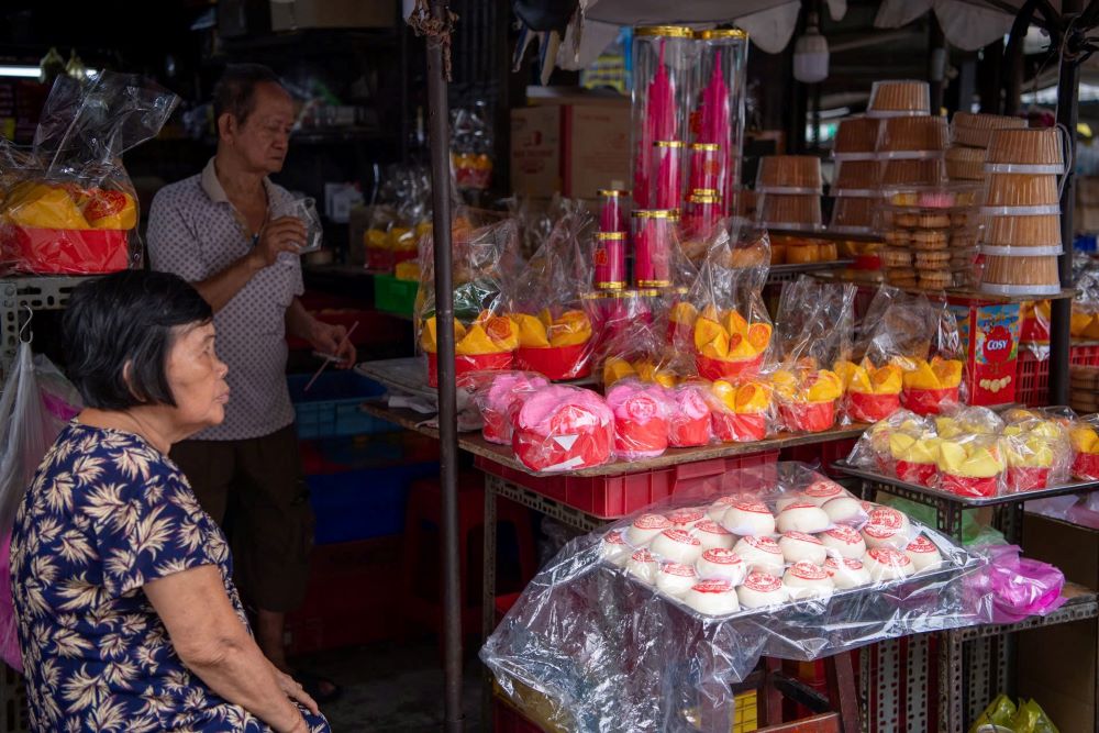 Types of buns, thuan buns or buns shaped like gold bars, money bags... symbolizing fortune are sold diversely and eye-catching. According to small traders, the prices of these types of buns are quite affordable and stable, helping people easily choose to make the offering tray more decent, praying for a prosperous and smooth new year.