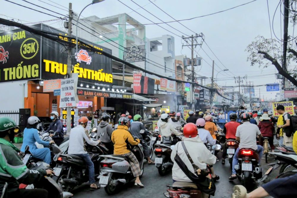 On the morning of February 26 (ie, the 10th day of the first lunar month), although Ho Chi Minh City had light rain in the early morning, the atmosphere in the snakehead fish-grilled capital on Tan Ky - Tan Quy street was still bustling. Crowds braved the rain to flock to buy offerings for good luck, causing this street to experience localized congestion at many times.