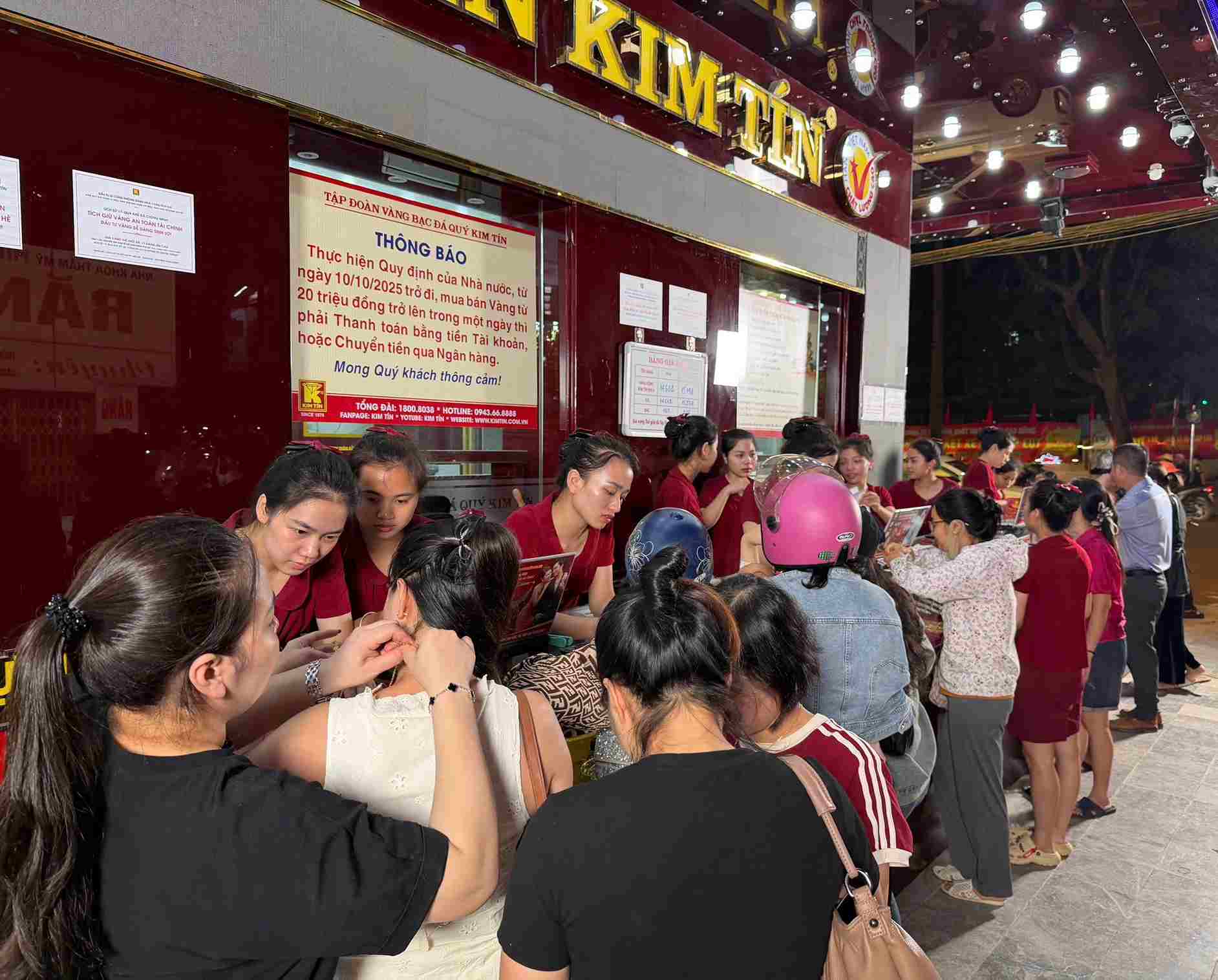 In order to serve customers on the occasion of October 20 - the day when demand for gold is increasing, the store temporarily "moved" the counter to the sidewalk, selling and repairing the inside.