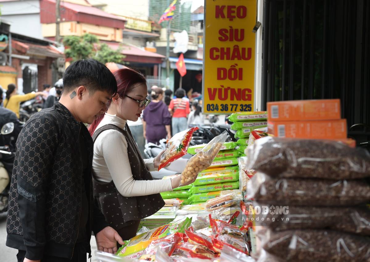 With more than 40 years of attachment to the confectionery making profession, Mr. Tran Ngoc Quang (Tien Huong village, Vu Ban commune) said that to prepare to serve tourists during Vieng market, Mr. Quang's family's main items are peanut candy and doi candy. Although products are sold year-round, during Vieng market, the number of customers increases sharply, making consumption many times higher than usual. This year's market, his family sold about 50 - 70 boxes of various types of candy.