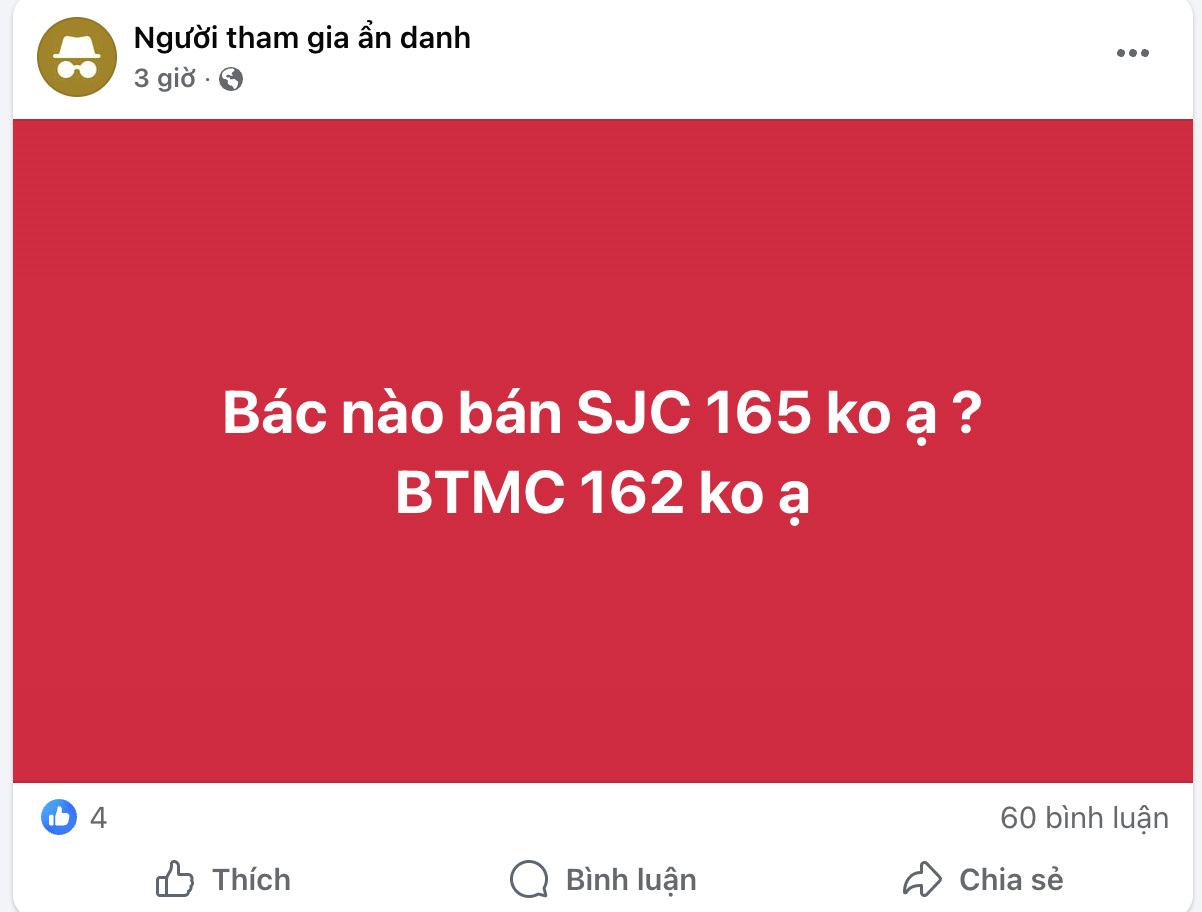 On the evening of October 21, the post with the content "Who would sell SJC for 16.5 million VND/only no", after only 2 hours attracted more than 60 comments.