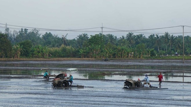 Mekong Delta – To avoid the impact of drought and salinity and the rainy season on the winter-spring rice crop, farmers proactively sow early and increase field sanitation.