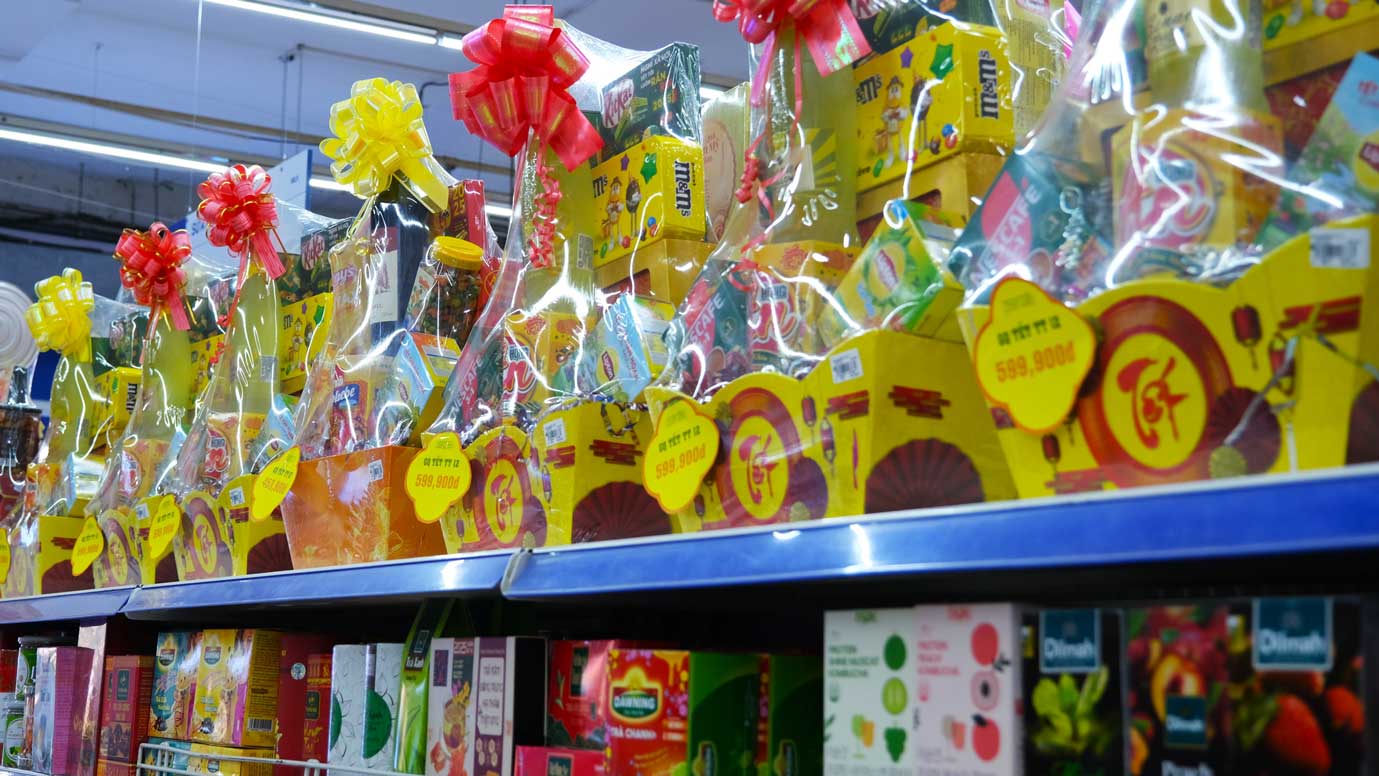 Tet gift baskets are sought after, stores have a bumper crop on the first day of the year