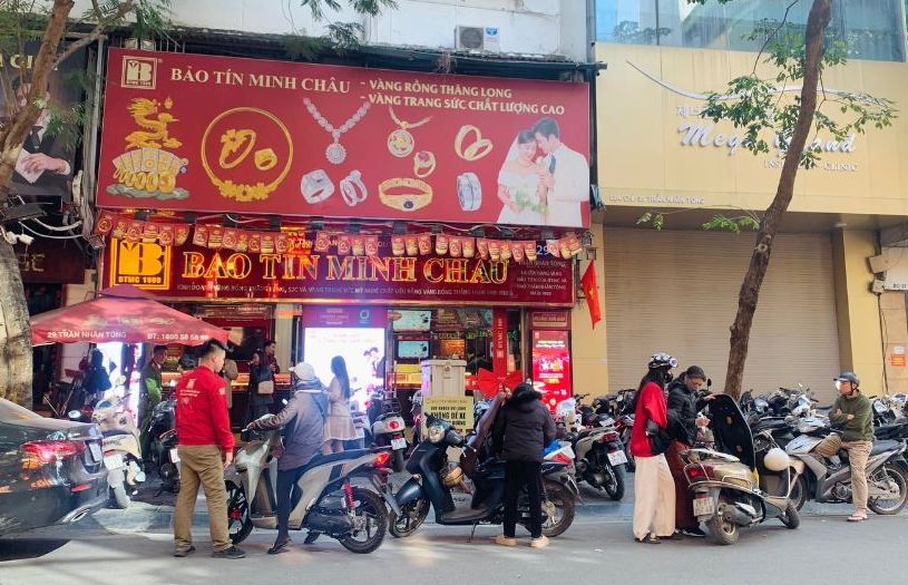 The price of plain gold rings is still at a high level. In Hanoi, many people continue to wait to buy.