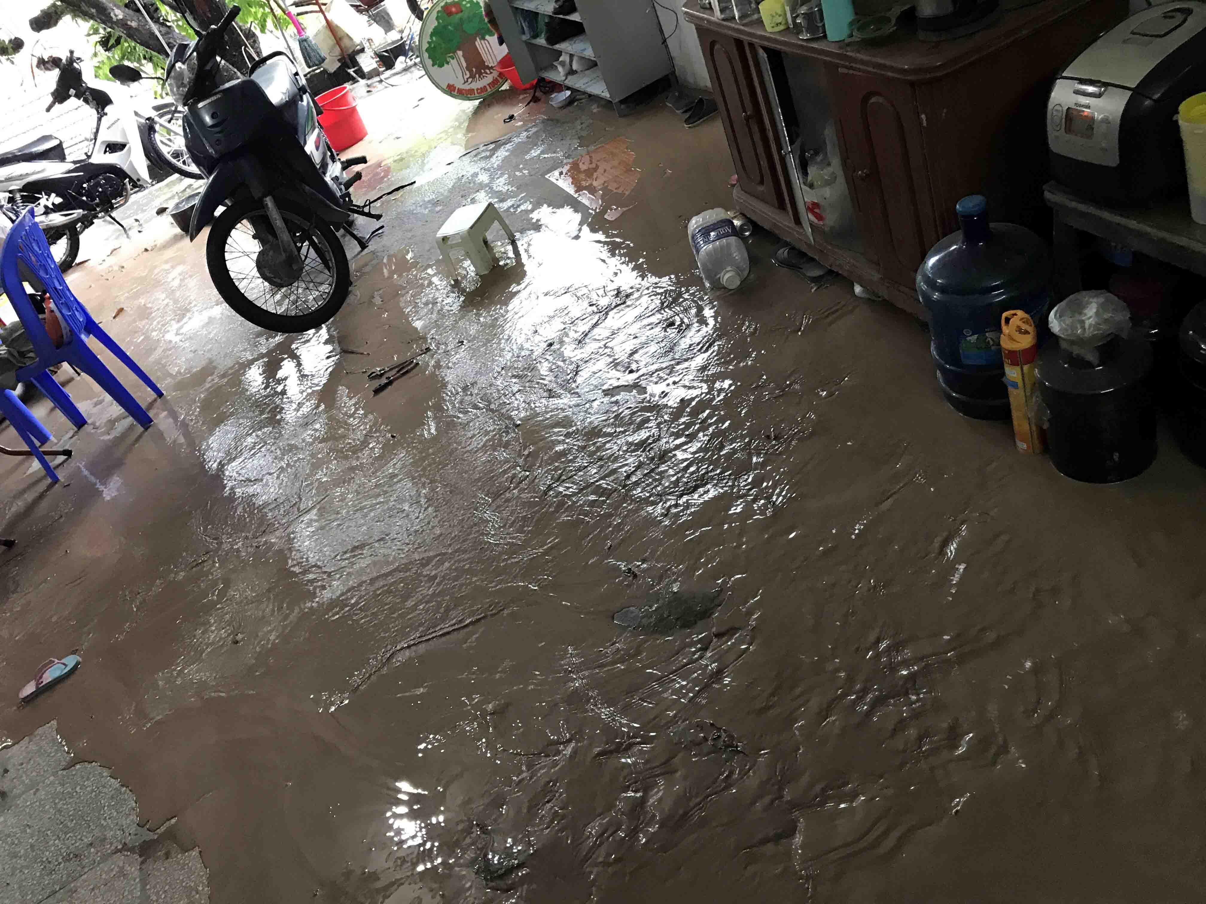 | Mưa cùng nước bùn tran xuống một số hộ dân dưới chân dự án FLC Hạ Long. Ảnh: T.N.D |
