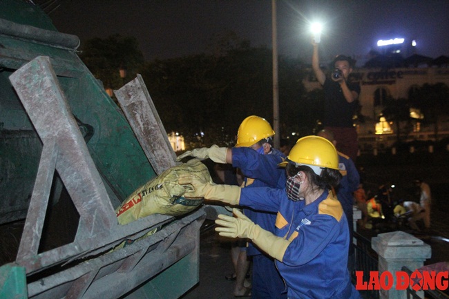 | Đơn vị chức năng cho biết, ngay sau khi thu dọn xong tại đây sẽ cho xe tưới nước rửa sạch bờ kè hồ để không bị ám mùi hôi thối, ảnh hưởng đến sức khỏe người dân. Ảnh C.N |