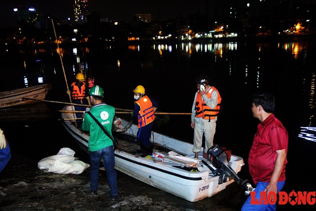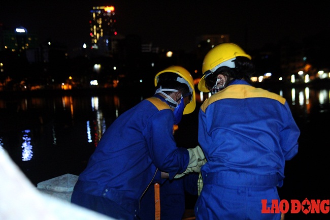 Theo ghi nhận, khoảng 19h ngày 8.6, Công ty Thoát nước Hà Nội đã nhanh chóng xử lý, tiến hành vớt xác và thu gom cá chết, rác thải. Thậm chí, ngay trong đêm, đơn vị này vẫn điều thêm thuyền, thiết bị hỗ trợ để thu dọn cá chết, cải thiện môi trường nước. Bên cạnh đó, cơ quan chuyên trách về môi trường cũng đến lấy mẫu nước và mẫu ruột cá tiến hành xét nghiệm.