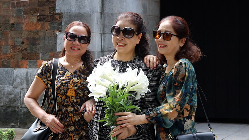 That's right, time is inherently without shape, color, appearance, thanh, taste like Sunyata in Buddhism. However, mortals can still see time through the color of the seasonal flowers. Binh Nguyen Loc sees time through Ms. Mua's flying tamarind hair. And here, we see Ms. Mua when Hanoi is filled with the fragile white color and the pure fragrance of lilies.