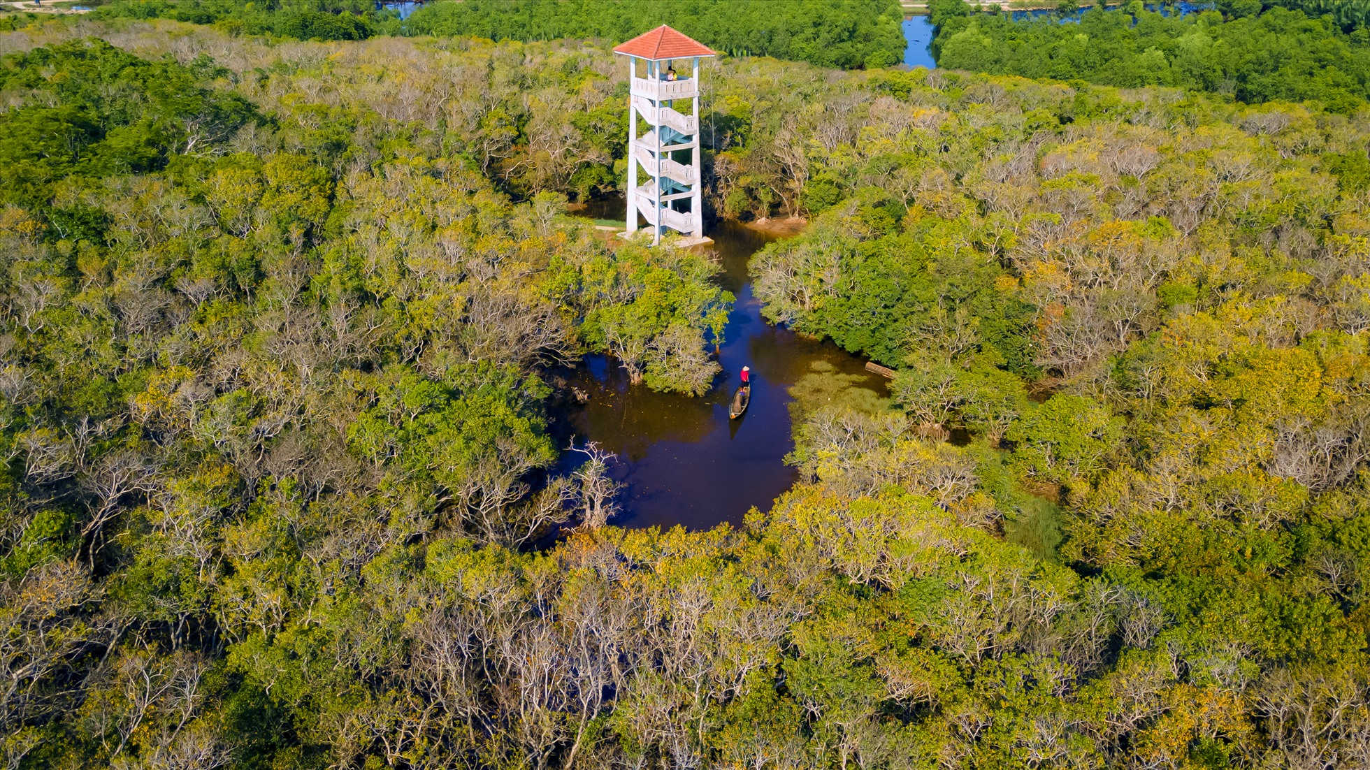 When the weather turns to autumn, all the tea trees here will change from green to a poetic bright yellow.With the poetic and magical beauty of Ru Cha, it has attracted many photographers to come here to hunt for their own photos.Visitors can rent a boat to gently glide on the water and visit to see the brilliant colors of the changing leaves.The early autumn sunshine blends with the yellow color of the forest on the beautiful water like a peaceful ink painting.According to local people, “Ru” means forest, “Cha” is a tree species that occupies about 90% of the area of this area.This place contributes to preventing salinity, providing resources and aquaculture for local people.