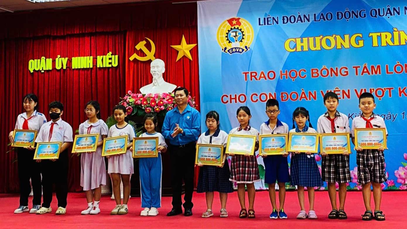 Can Tho - 60 students who have overcome difficulties and are excellent students, children of union members, workers, civil servants, and laborers, have been awarded the Golden Heart scholarships before the new year.