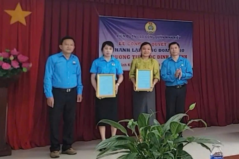 Can Tho - On December 11, the Ninh Kieu District Labor Federation announced that the unit had just held a ceremony to announce the Decision to establish a new Trade Union of Dinh Bo Linh Primary School.
