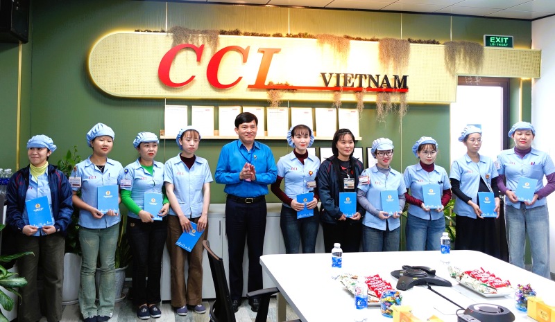 At CCI Vietnam Co., Ltd. (a multinational enterprise managed by Singapore) specializing in manufacturing electronic components, Mr. Nguyen Xuan Hung and leaders of the City Labor Federation visited and inquired about the production situation and lives of workers and gave lucky money at the beginning of the year to about 500 workers working in the evening shift. On this occasion, the working delegation also presented 20 support scholarships to workers in difficult circumstances.