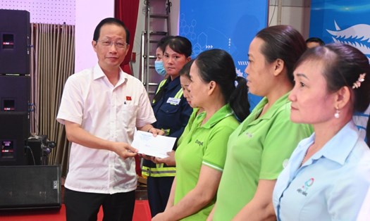 On this occasion, there are 100 gifts to support union members and workers in difficult circumstances, each worth 1 million VND from the Union's financial resources.