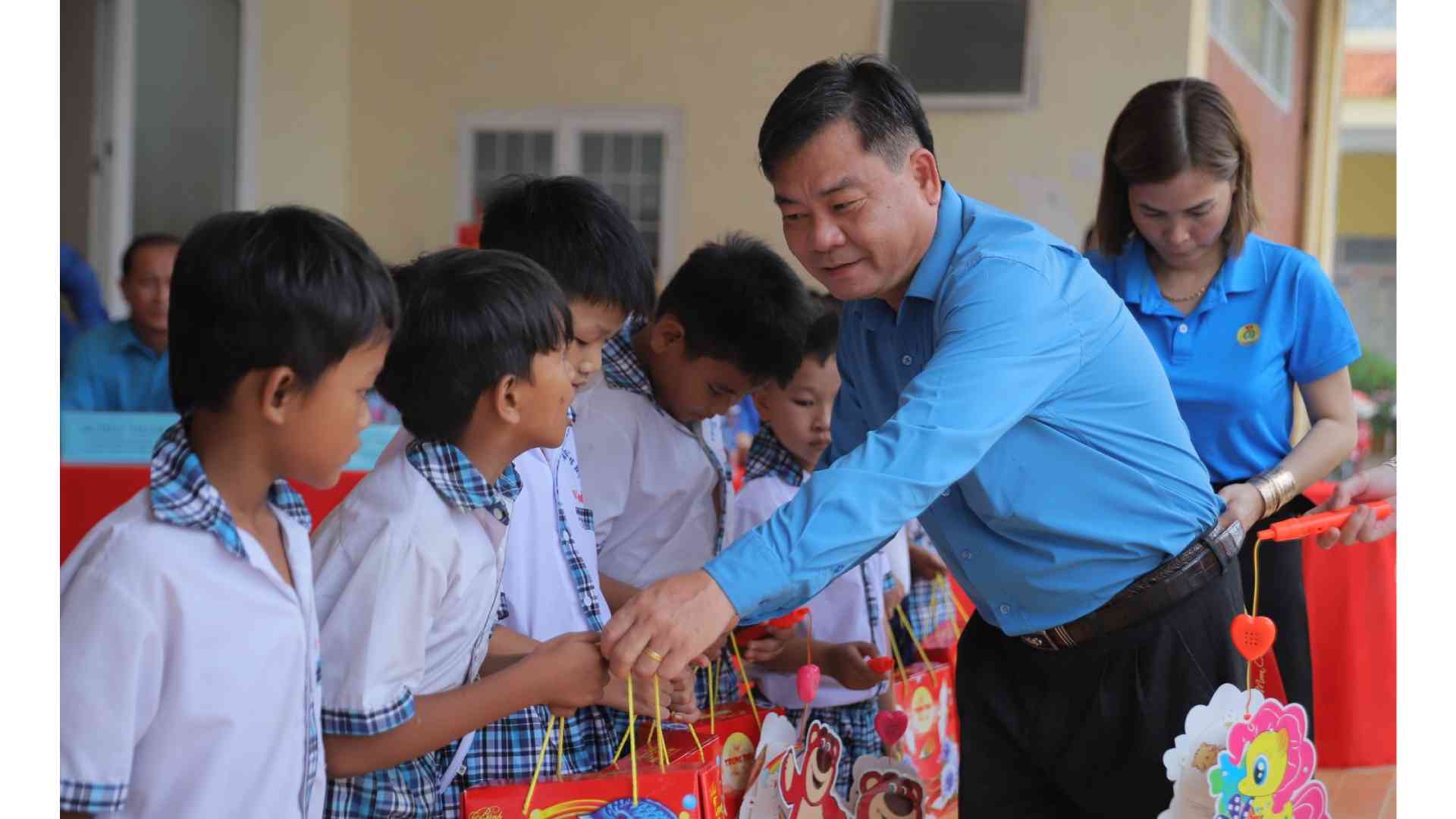 Here, 700 gifts were given to students in special circumstances, poor children, children of officials, workers and civil servants of the city, each gift worth 200,000 VND. The total cost of the gifts was 140 million VND, supported by the Bank for Agriculture and Rural Development of Vietnam, Hong Ngu City Branch; former students of Hong Ngu I High School, 2003-2004 school year, Fashion Garments Mekong Company, Tam Nong District and the city budget.