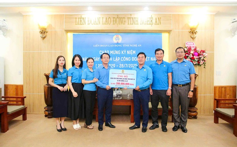 Nghe An - Faced with heavy damage caused by storm No. 3, the Hai Phong City Labor Federation has donated 200 million VND to support union members and workers in flooded areas.
