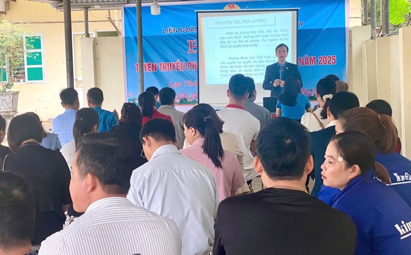 Hoa Binh - Lac Thuy District Labor Federation has just organized a class to disseminate and educate about the law for 100 workers and laborers.