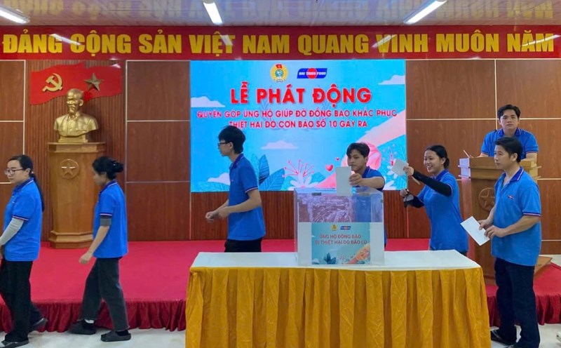 Lam Dong - The grassroots union in Phan Thiet Industrial Park has mobilized union members to donate 188 million VND to support people affected by storm No. 10.