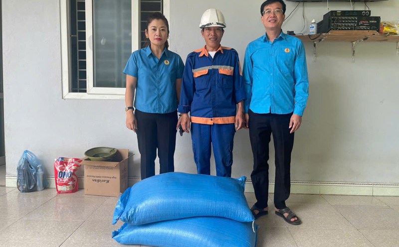 Lao Cai - Nghia Lo Ward Trade Union visited and presented rice and necessities to workers at Yen Bai Hydropower Plant after storm No. 10.