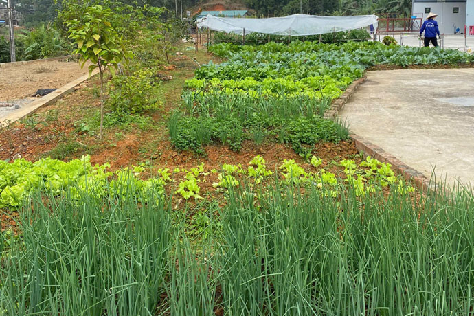 Accordingly, the vegetable garden area was expanded to 1,000m2, planting a variety of plants suitable for soil and climate conditions such as: chili, pumpkin, squash, green vegetables and many types of watercress.