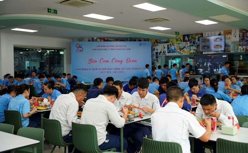Phu Tho - To celebrate the 96th anniversary of the founding of the Vietnam Trade Union, the Provincial Trade Union coordinated to organize a Trade Union Meal for thousands of workers and laborers.