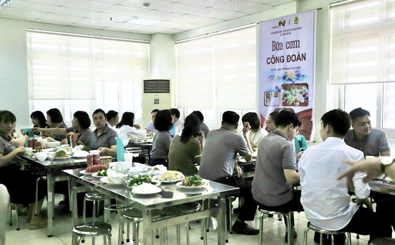 The value of each meal at the "Trade Union Meal" is 50,000 VND, of which the enterprise supports 38,000 VND/meal, and the local union supports 12,000 VND/meal. Meals ensure nutrition for workers and include fresh milk, fruit, and jelly for each serving.