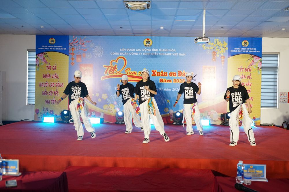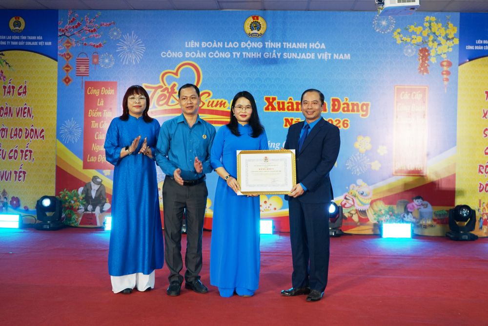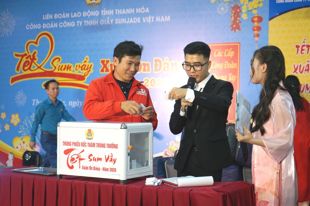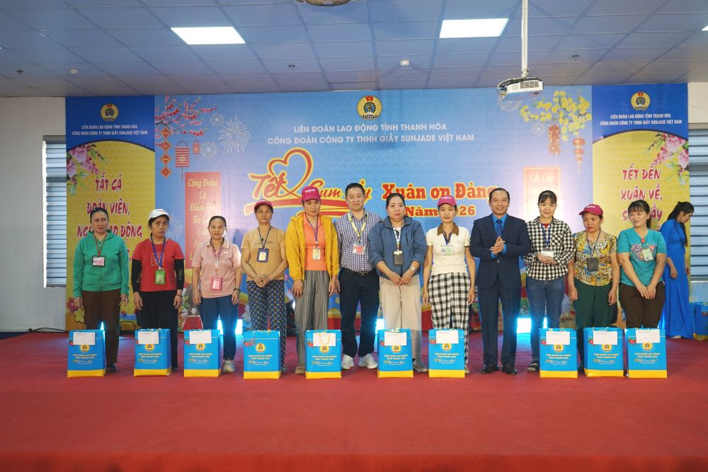 On the afternoon of January 31, the Trade Union of Sunjade Vietnam Shoe Co., Ltd. (in Le Mon Industrial Park, Quang Phu ward, Thanh Hoa province) organized the program "Tet Sum vay - Spring of Gratitude to the Party" in 2026 for union members and employees at the company.