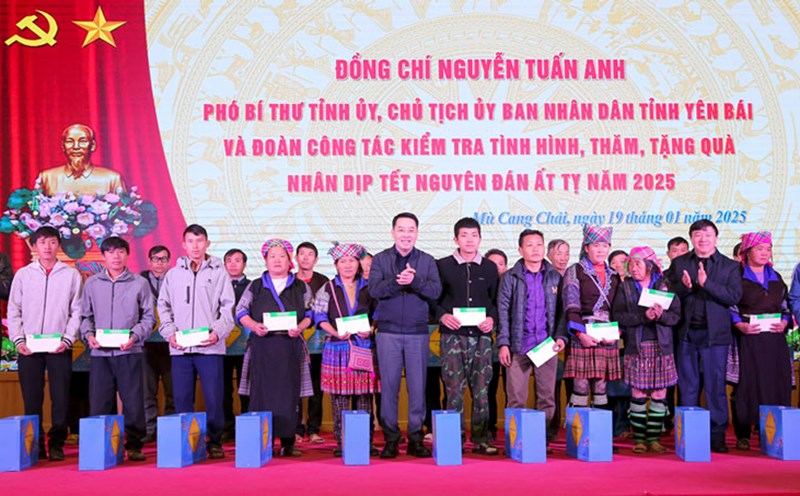 On January 19, Mr. Nguyen Tuan Anh, Chairman of Yen Bai Provincial People's Committee and a delegation from the State Bank of Vietnam presented Tet gifts in Mu Cang Chai district.