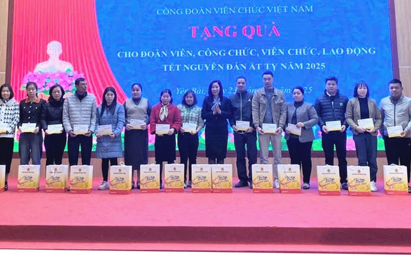 On January 23, Yen Bai Provincial Labor Federation organized a program to give Tet gifts to union members, civil servants, public employees and workers on the occasion of Lunar New Year.