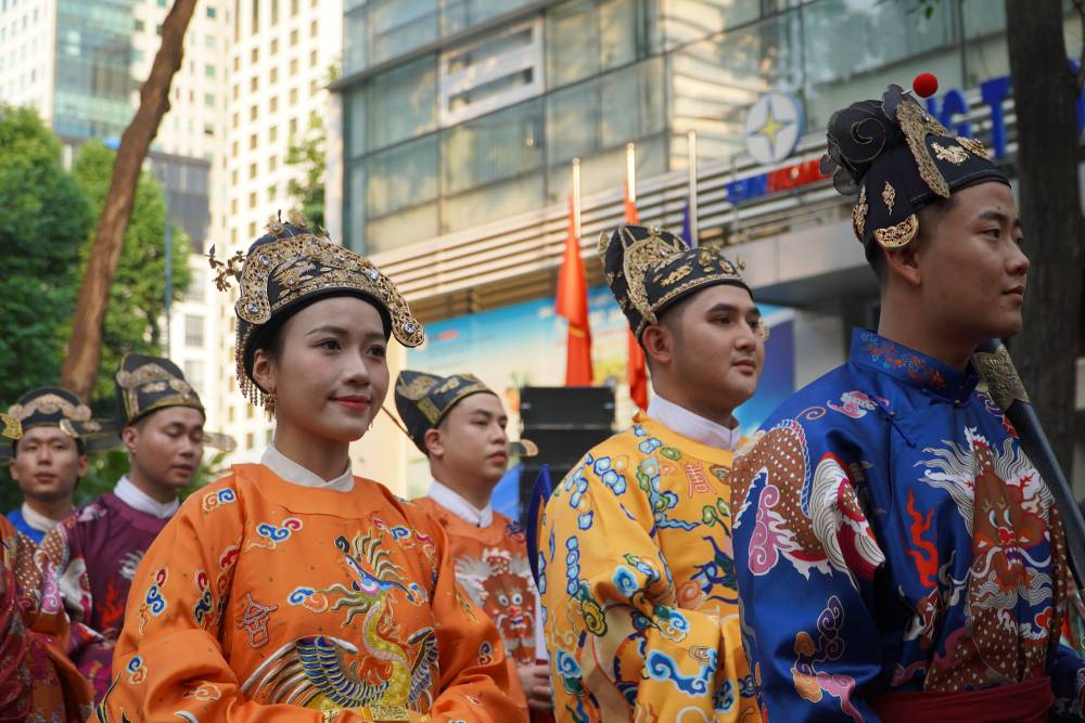 The appearance of giao lĩnh, nhật bình, áo tấc and Vietnamese costume variations from many historical periods has created a unique cultural picture amidst the urban flow.