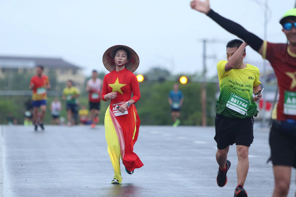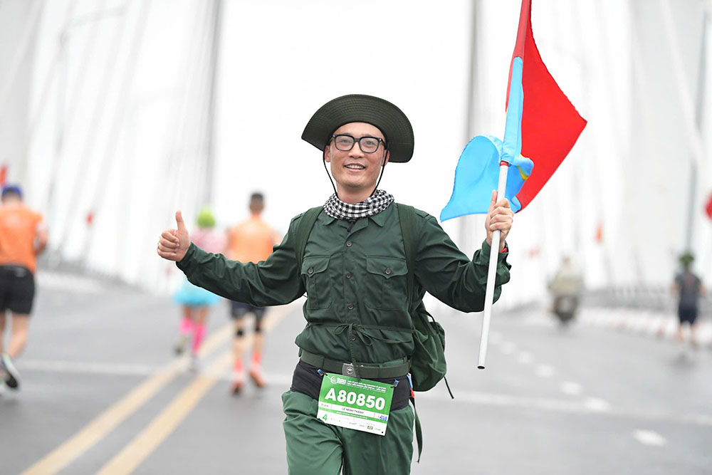 On the morning of March 30, the competition events of Tien Phong Marathon 2025 officially took place in Quang Tri province. Although having to compete in quite cold weather, most athletes are in high spirits.Many athletes wear red flags with yellow stars on the running track, expressing patriotism in the atmosphere of the whole country preparing to welcome the 50th anniversary of the country's reunification.The flag of the National Liberation Front of South Vietnam appeared on the running track in the historic Quang Tri land.Professional athletes such as Hoang Nguyen Thanh, Nguyen Thi Oanh, ... continue to show their class in the events they compete in. This can be considered a good sign for Vietnam's athletics when the athletes are all in good form before the 33rd SEA Games.The athletes also brought unique costumes to the tournament.All join in the vibrant atmosphere, turning Tien Phong Marathon 2025 into a real festival in the heroic land of Quang Tri.