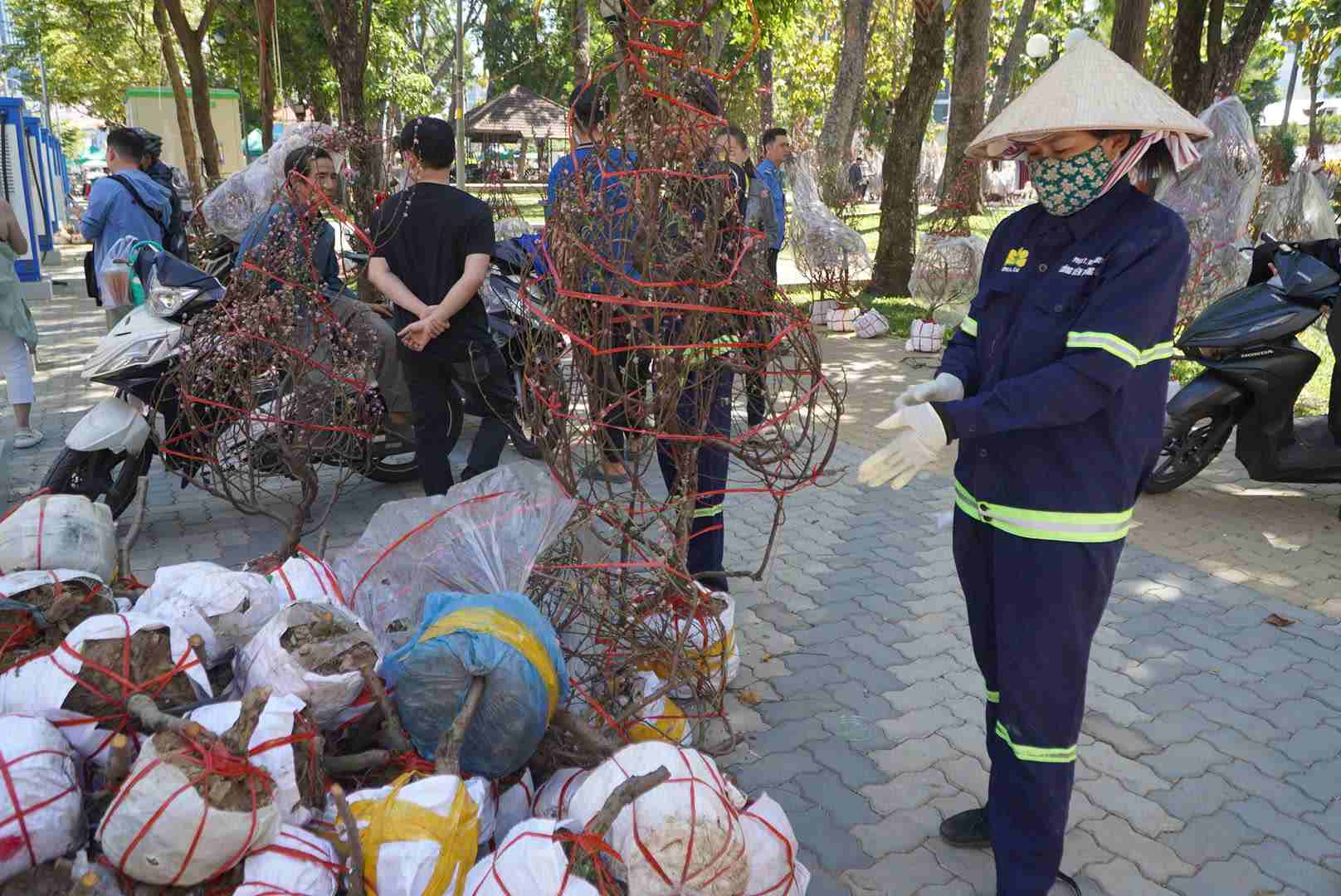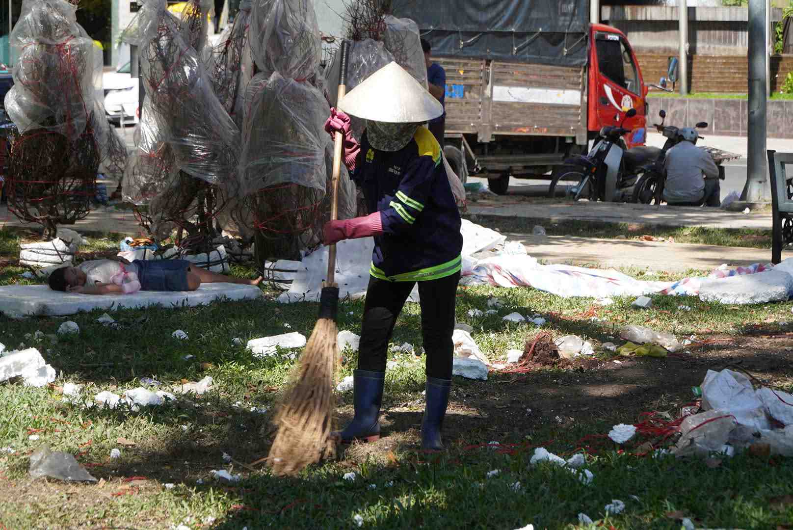 At noon on February 16th (ie December 29th of the lunar calendar), small traders at the Tet Flower Market at 23/9 Park (HCMC) are busy carrying out the final transactions and cleaning up stalls to return the premises on schedule.