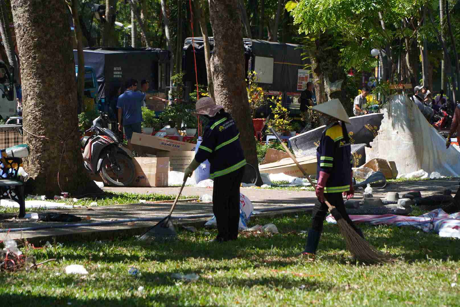Cleaning workers and specialized vehicles have begun to collect garbage, leaves and remaining items. According to a worker at the scene, thanks to the good consumption of flowers, the amount of flowers in stock is not large, so it is expected that by 2 pm on the same day, the entire park grounds will be restored to their clean and beautiful appearance for people to have fun and welcome New Year's Eve.