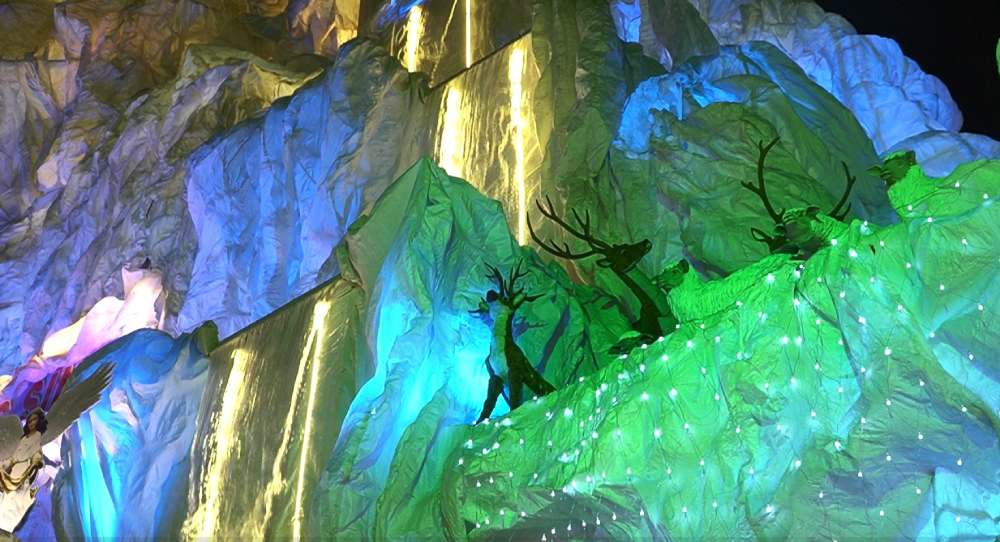 Notable among those landscapes are the elaborately built wooden house models with roofs covered in pure white snow. Interspersed in the pine forest are miniatures with rich Christmas colors, contributing to creating a space that is both warm and magical.