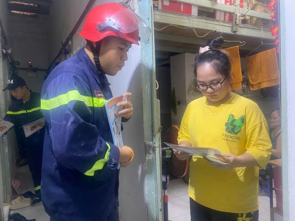 Following the direction of the leaders of the Ministry of Public Security, the Board of Directors of Ho Chi Minh City Public Security advised the organization to simultaneously deploy to 22 local groups in the city to propagate and guide measures to ensure fire safety, distribute leaflets, instruct people to install the HELP 114 application and guide the implementation of 4 fire prevention solutions for subjects such as boarding houses, mini apartments, and rental rooms to overcome fire prevention shortcomings.
