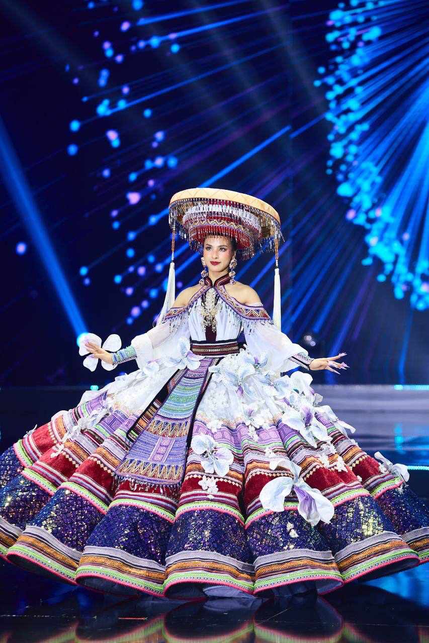 Coming to the national costume competition, she also made the audience burst into tears when she wore a national costume called "Ban Flower Dance".