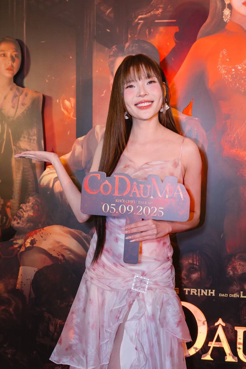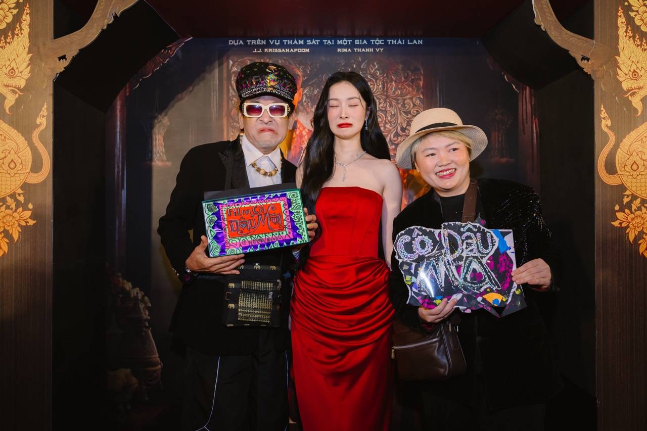 In addition to the main trio of actors Rima Thanh Vy, Cong Duong, Jun Vu, the event also featured Han Sara, Hai Nam, Thuy Diem, Nhan Phuc Vinh, Tran Bao Son, Emma Le, Thuy Anh... creating a vibrant atmosphere like a "showbiz wedding".