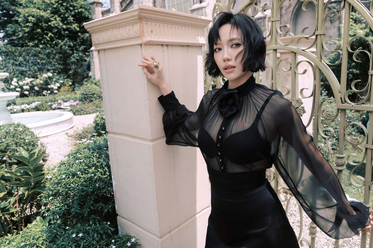 In the photo series, Dieu Nhi tried outfits with four different outfits, revolving around the main black color but flexibly transformed. When combined with fabric, leather, and jeans, the actress brings a new image, avoiding monotony.