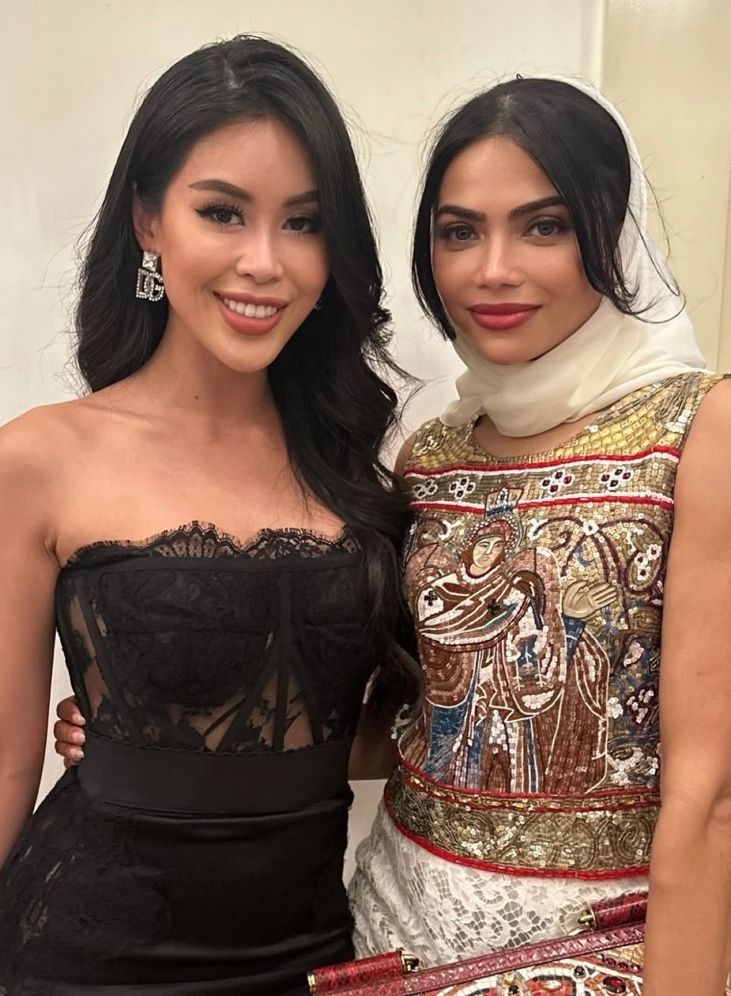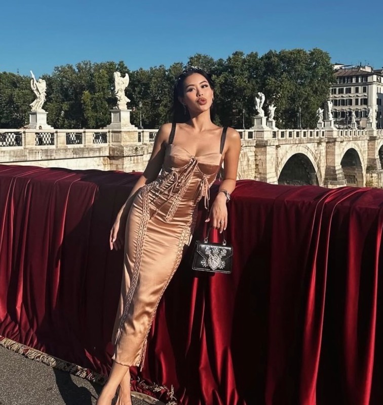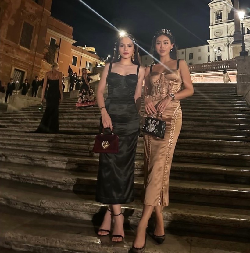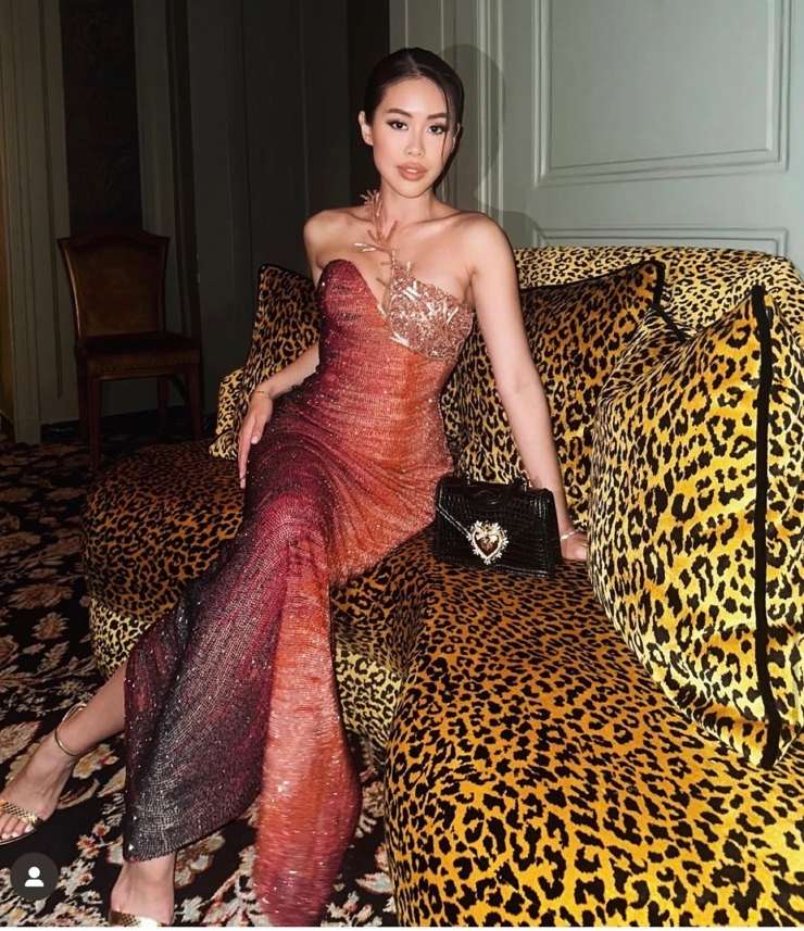 During her trip to attend a fashion event in Italy, she wore a luxurious black outfit, interacting with Cher in a sophisticated artistic atmosphere. Tien Nguyen was accompanied by Marie Tram Anh.