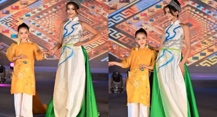 Recently, Dinh Ngoc Ela had the opportunity to perform with supermodel Vu Thu Phuong as a vedette and was honored as the Ambassador of the art program "Viet Bac Imprint" - an event within the framework of the program "Through the Viet Bac Heritage Areas", organized by the People's Committee of Bac Kan province on August 26, 2024.