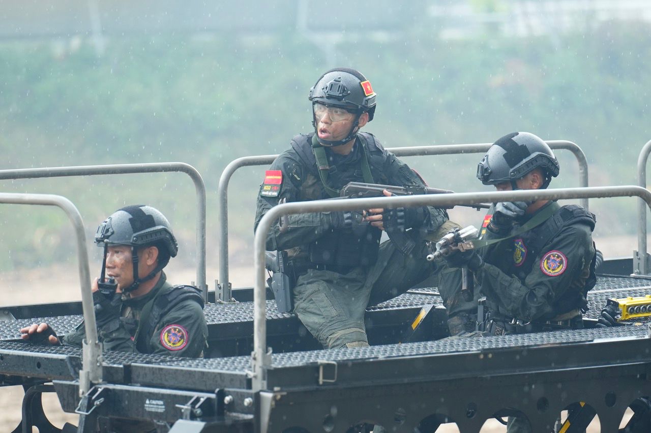 In individual combat exercises, team fighting and target breaks, MONO always rushes forward, holds a gun and shield weighing up to 20 kg but still moves decisively, coordinating well with teammates. The male singer's endurance and determination made many artists admire him.