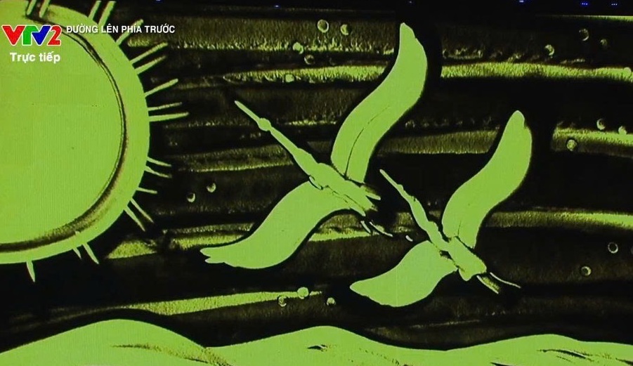 At the end, sand paintings convey a message about the continuation of history and the aspiration for development in the new period. Images of modern works, symbols of national achievements are expressed softly, ending with images of flamingos spreading their wings towards the sunlight. The performance received enthusiastic response and long applause from the audience.