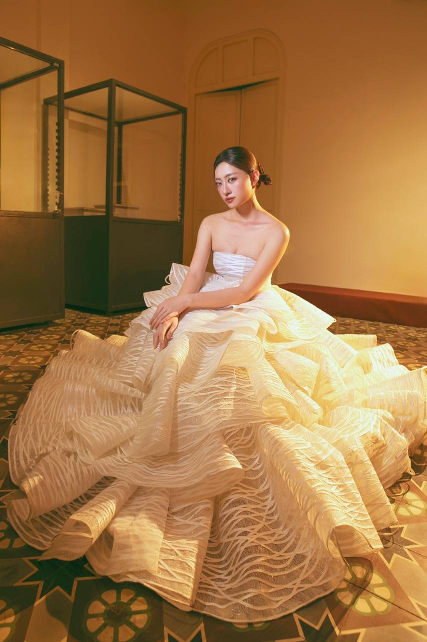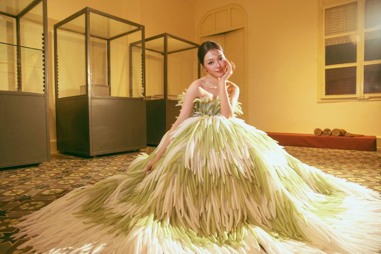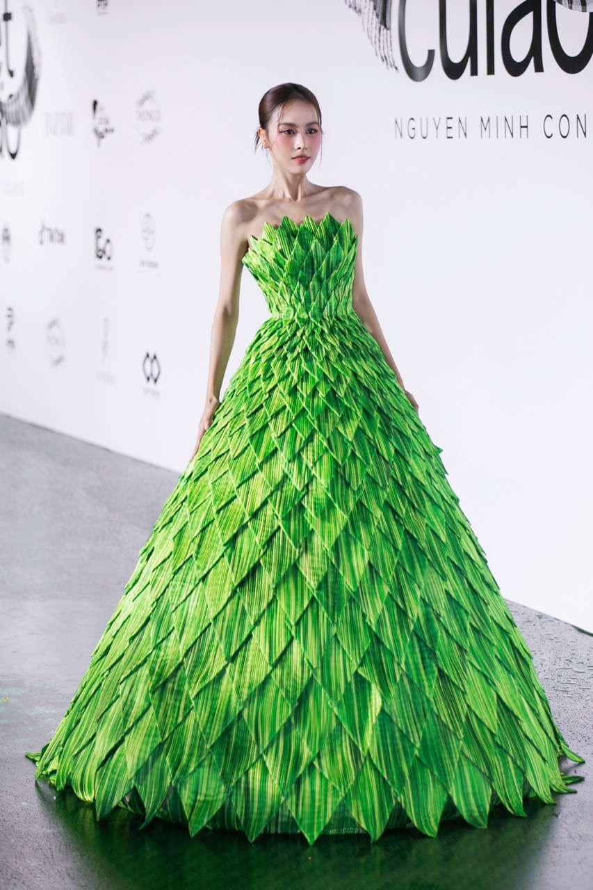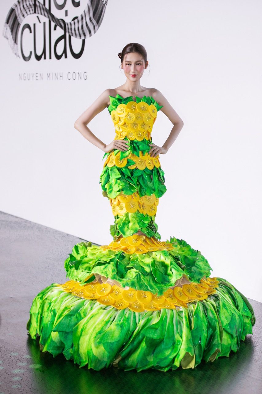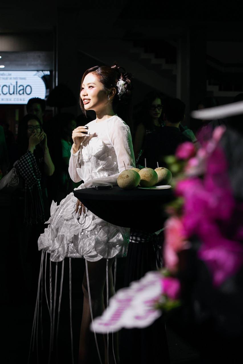 Inspired by 20 Southern folk cakes, Nguyen Minh Cong has turned them into sophisticated and emotional haute couture designs. From "Sherock", "Cake Khanh", "Lot Banh" to "Coconut jam", "Squatting Banh Duong"... each costume is recreated vividly, bringing both a rustic breath and maintaining luxury and the spirit of Vietnamese craftsmanship. The collection is an expanded version of the collection that set a Vietnam Record in 2021 - "Mini fashion collection made from Southern folk dishes", now reborn in its true shape on the professional catwalk.