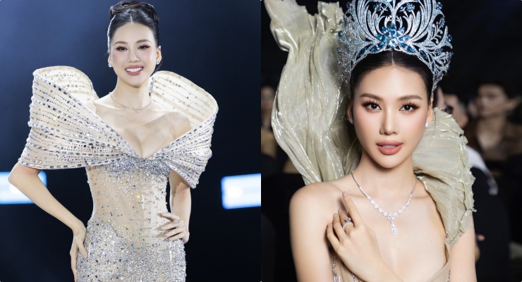 Especially in the final night, the evening gown chosen by Quynh Hoa in the final walk moment also attracted attention. The design was inspired by the beauty of the stars in the Miss Universe sky.