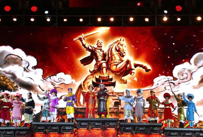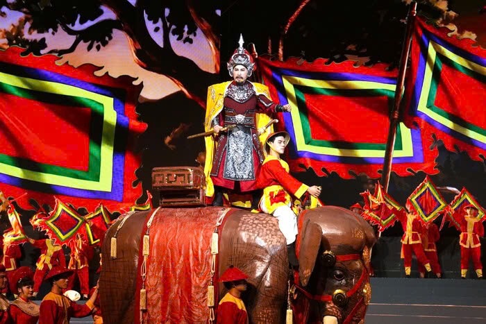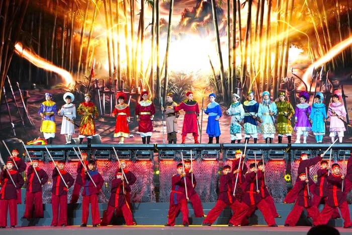 Besides traditional artistic elements, the program also impresses thanks to the application of LED panorama projection technology, modern stage graphics and invested sound and lighting systems. Battle images, lightning-fast troops or triumphal moments are vividly recreated, creating a magnificent visual space, helping audiences easily feel the heroic historical atmosphere.